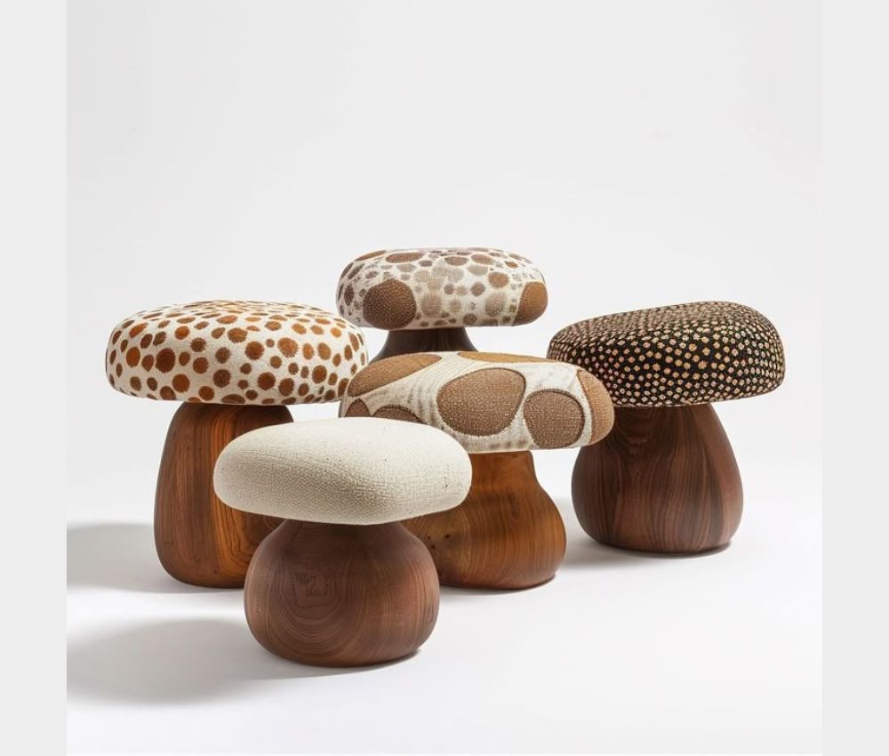 You can experiment with different colors and patterns for the fabric to express your quirky side with Oria Homes effortlessly. From the wood to the fabric upholstery for the mushroom head-like cushion, we can help you add your element to the design.